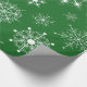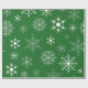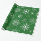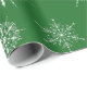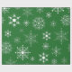 Trendy white snowflakes various shapes on green background. Customisable wrapping paper template