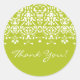 Our elegant white damask on a spring green background thank you stickers are the Perfect finishing touch for you thank you notes or bridal shower favours. Matching items available in our shop @ www.celebrateitinvites.com. This item is available in a variety of colour combinations!