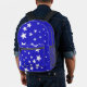 Twinkling star pattern with white stars on dark blue sky or space. Modern playful design.