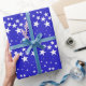 White star pattern on blue background wrapping paper