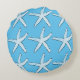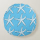 White Starfish Pattern Beach Sky Blue Christmas Round Cushion