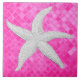 White Starfish Pink Sea Glass Pattern Ceramic Tile