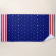 Red and white stripes and star pattern on blue background Beach Towel.