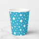 Paper cups featuring a white stars pattern against an editable background colour (click customise, go to the "Auto Warping, Wrap" layer and change the background colour)