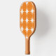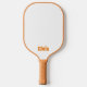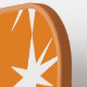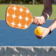 This unique pickleball paddle features white stars on a bright orange background. Personalise the text with a team name or the player’s name.