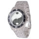 White watch with a steel band with a clock with Yin Yang print of nicky's addiction