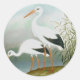 The white stork (Ciconia ciconia) is a large bird in the stork family with plumage mainly white, with black on the bird's wings. The image feature two storks on the bank of a pond.