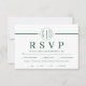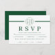 White stripe initials formal emerald green wedding RSVP card