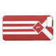 Protect your iPhone 8/7 with a case featuring a stylish geometric pattern with bold white stripes on a red background. Three alternating white and red chevrons end at a red diamond outlined with white. It looks like a stylised medal hanging from a ribbon. The diamond contains a customisable monogram.