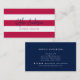 White Stripes and Custom Colour Modern Script business card that features editable background colour on the front (click customise and change the background colour from pink to another colour) and on the back.