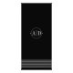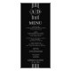 This wedding menu card showcases a sophisticated combination of white initials and bold black stripes. The design boasts a series of sleek vertical stripes, complemented by a circular frame that elegantly displays the couple's initials. Adding a touch of romance, two delicate hearts adorn the frame. With its minimalist aesthetic, this design is an ideal choice for couples seeking a refined and formal ambiance for their evening wedding celebration.