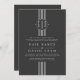 White stripes and initials charcoal grey wedding invitation. It displays white vertical stripes in the centre with a circle with your initials and two little hearts and your text. The back is of solid dark grey colour.