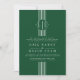 White stripes and initials emerald green wedding invitation