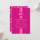 White stripes and initials magenta pink wedding invitation. It displays white vertical stripes in the centre with a circle with your initials and two little hearts and your text. The back includes a pattern made of your initials on magenta colour.