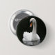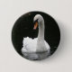 This button features a photograph of a beautiful white swan with a bright orange beak. The swan is a Mute Swan (Cygnus olor) and was photographed in the UK. It is gently gliding across the water and looks very serene.