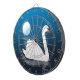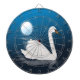 WHITE SWAN FLOATING IN WATER WITH A FULL MOON