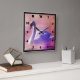 A charming whimsical fairytale image. Soft romantic photo of a white swan cast in purple lighting swimming on a misty lake. Colorful purples and pinks create a mystical magical mood.