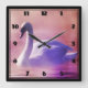 White Swan floating on a misty lake Square Wall Clock