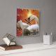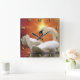 White Swan in a lake with a orange gold sunset Square Wall Clock