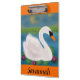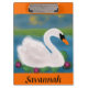 Orange clipboard with beautiful white swan in a pond surrounded by lily pads. Customise with your own text.