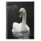 This awesome notebook features a photograph of a beautiful white swan with a bright orange beak. The swan is a Mute Swan (Cygnus olor) and was photographed in the UK. It is gently gliding across the water and looks very serene.