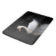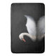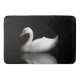 White mute swan floating in a lake with reflection in the water against black background. Low key.