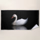 White swan on black beach towel
