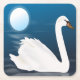 WHITE SWAN FLOATING IN WATER WITH A FULL MOON