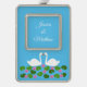 White Swans and Water lilies Wedding Custom Silver Plated Framed Ornament