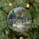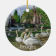 Painting of white swans resting and eating in special area near Begijnhof in Bruges, Belgium. Digital generated painting. Area designated for swans in the historic city centre in Bruges old town.