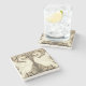 The coasters are gorgeous, a quality feel and heavy weight. They look like a precious archeological find. A rustic stone juxtaposed with a modern floral black and white print. I like the way the print goes slightly imperfect on the cut stone edges giving them a kind-of natural beauty.