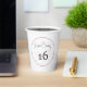 Complete your celebration with this chic modern minimalist Sweet 16 happy birthday paper cup, designed with on a white background, with elegant pink script and a classic black “16” for a clean, stylish finish.