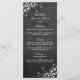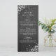These elegant white swirl on chalkboard wedding menu cards are perfect for any couple planning a romantic and chic marriage.