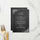 These elegant white swirl on chalkboard wedding menu cards are perfect for any couple planning a romantic and chic marriage.