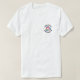 White t-shirt with rounded logo, name and url in front, and logo with name and motto in the back
