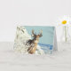 In this winter nature scene, a large buck white-tailed deer is seen along a snow covered hillside. The whitetail or white-tailed deer is the most common native deer in North America. This outdoor theme design could be used as a Christmas card, an invitation for hunting, camping or hiking trips, or simply for everyday correspondence.