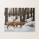 Wildlife lovers puzzles depicting winter scene with white tailed deer in the snow.
