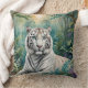 Whit tiger with blue eyes and golden stripess in a blue green rainforest jungle watercolor