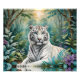 Whit tiger with blue eyes and golden stripess in a blue green rainforest jungle watercolor