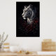 This artwork captures the quiet authority of a white tiger, surrounded by deep red roses against a dark, moody background.