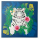 White tiger portrait with tropical leaves ceramic tile
