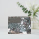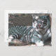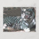 A white tiger lying under a tree graces this high quality postcard. Great for all animal lovers, as well as , to promote awareness of these majestic endangered animals.