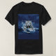 A roaring white tiger bursts from crashing waves inside interlaced triangle frames with subtle floral accents. Cinematic midnight blues and bold energy for standout apparel and wall art.