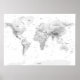 White Topographic World Map Poster