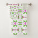 A towel set with bright pinks and green. The white background that can be personalised to any colour to match your home decor.