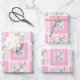 Wrapping paper sheet set with a pink snooty poodle pattern. Stylised poodles with pom poms and pouts.
