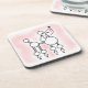 Hard plastic coaster with a snooty poodle illustration. A stylised poodle with pom poms and a pout on a powdery pink background.