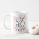 Mug with a snooty poodle illustration. A stylised poodle with pom poms and a pout on a powdery pink background.