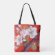 White Tree Blossoms on Red Background Tote Bag