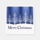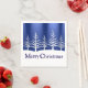 White tree silhouettes on snowy hills against a midnight blue sky on Christmas cocktail napkins, great for parties.